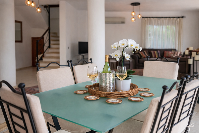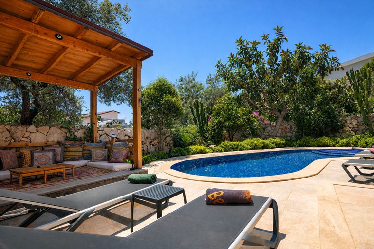 This is our second visit to this villa in 2 years and it's the only time we have ever returned to the same property. It's a very clean spacious villa which is well equipped. It is situated a short taxi drive from town if you stay in the height of summer like we did - or you can walk in if it's not so hot. But within easy walking distance are several restaurants including the Yelkin and the Brothers which we'd recommend. There's also a small supermarket within 2 minute's walk. The property is in a peaceful location and feels very private, especially at ground level. There are balconies on both the first and second floors so you are spoiled for choice when you want to sit out in the evening. The second floor bedroom doesn't have a door, but does have a gate across the stairs so it's safe (our 7/8 year old slept there) but it does mean it doesn't get as cool as other bedrooms with the air conditioning on. The kitchen is one of the cleanest I have come across and is easy to keep ant free, unlike others we have stayed in. The pool has steps and a shallow end with the deep end still being just in depth for someone who is 5'4". A really helpful touch is the provision of pool towels in addition to bathroom ones. This meant we only needed to pack 2 beach towels for the 4 of us given that the children never sit still on the beach and that helped with packing. We'd highly recommend this villa, and Kalkan. Kalkan is a small, friendly reset with easy taxi/car access to an amazing range of things including Patara beach and ruins (beautiful spacious fine sand beach), Xanthos beach (smaller beach with fine pebbles and good waves), and Saklikent gorge. The restaurants are great and the Thursday market with it's pancake pop up cafes is worth a visit.